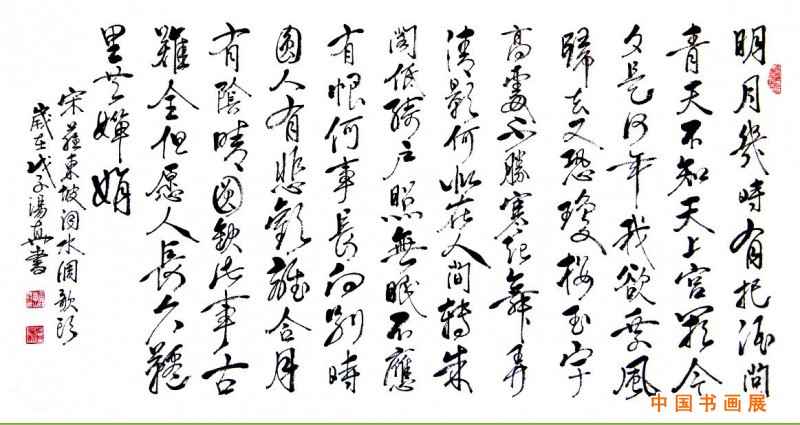 宋苏东坡词《水调歌头》行草180cm×97cm)宋苏东坡词《水调歌头》
